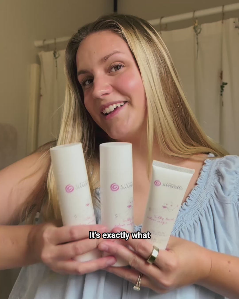 Silverette® cups couldn’t be easier to use! Just place them directly over your nipples at the end of your pumping or breastfeeding session and feel your soreness melt away. Some mamas express a few drops of breast milk into each nipple cover for nursing before applying them, but this isn’t required! Wear your Silverette® cups between feeding sessions for as long as is comfortable, and remove them when it’s time to nurse or if you feel any discomfort. Each breastfeeding journey is different — if you have concerns or experience irritation, consult your lactation consultant or healthcare provider for personalized advice.